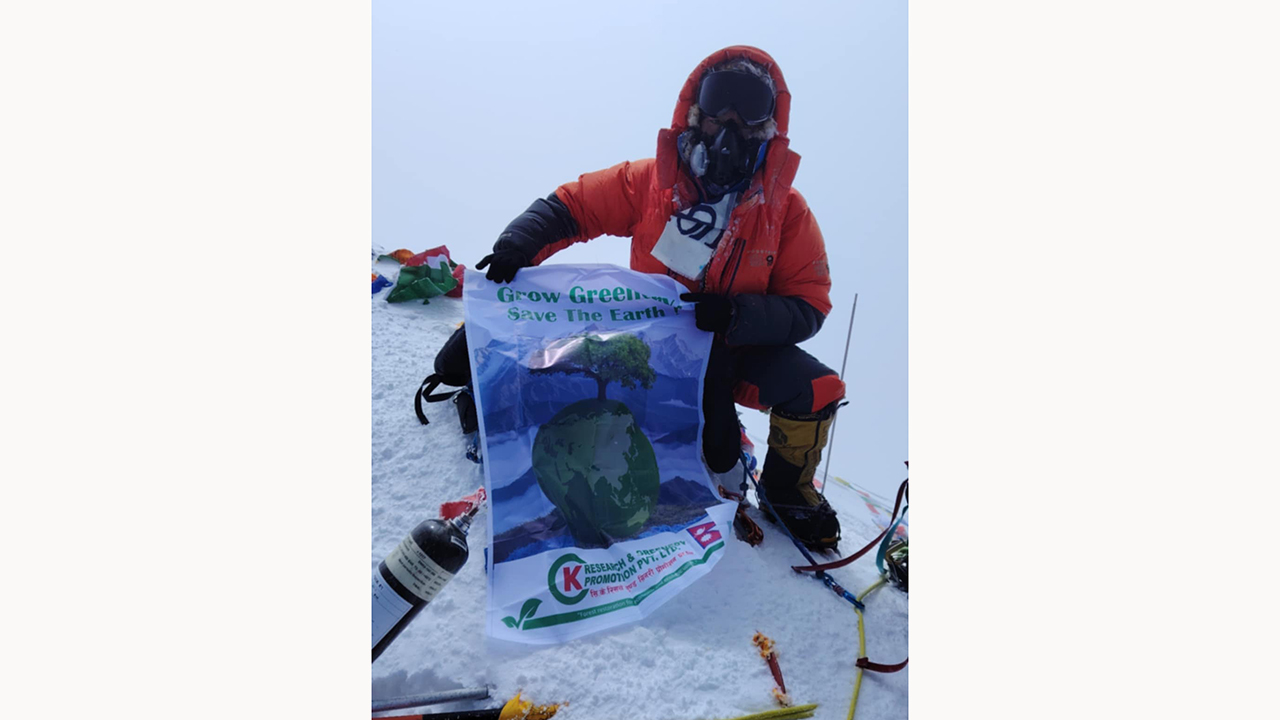 “Grow Greenery, Save the Earth” भन्ने सन्देश समेटिएको झण्डा सगरमाथामा !