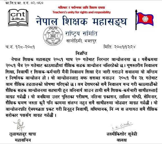 शिक्षक महासंघद्वारा अनिश्चितकालीन शैक्षिक हड्ताल घोषणा