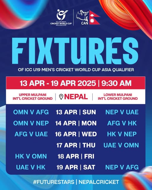 काठमाडौं । आइसिसी अन्डर–१९ पुरुष क्रिकेट विश्वकप एसिया छनोट प्रतियोगिताको तालिका सार्वजनिक भएको छ ।