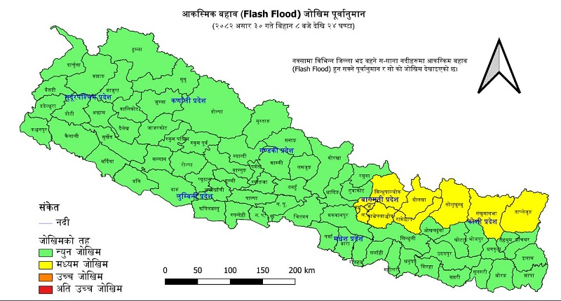 संखुवासभा सहित ३७ जिल्ला बाढीको जोखिममा