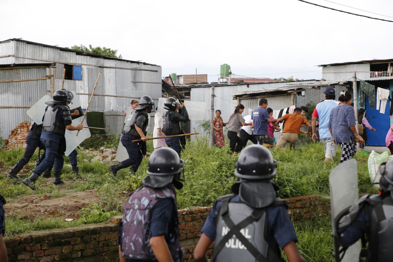 स्थानीयले नगर प्रहरीमाथि ईंटा–ढुंगा प्रहार गरेपछि प्रहरीले लाठीचार्ज गर्दै लखेटेको छ । आज बिहान नेपाल प्रहरीसहित डोजर लिएर पुगेको नगर प्रहरीले सुकुमबासीका टहरामा डोजर लगाएको थियो ।