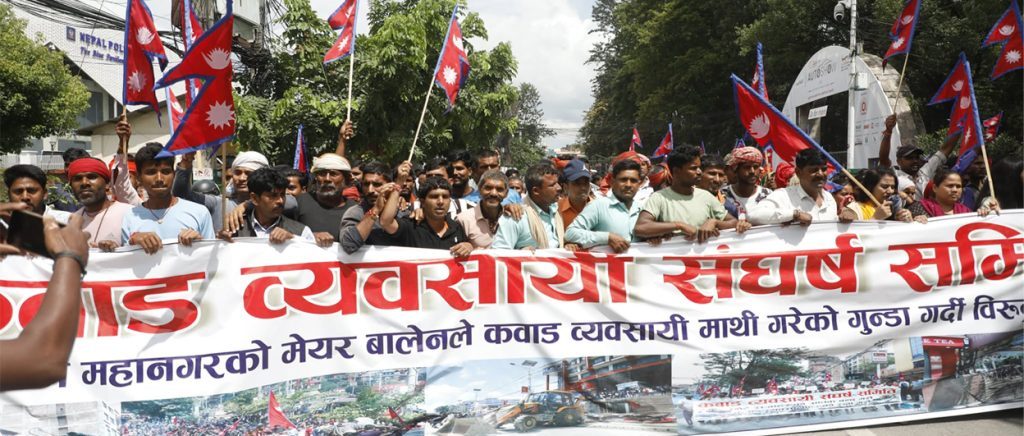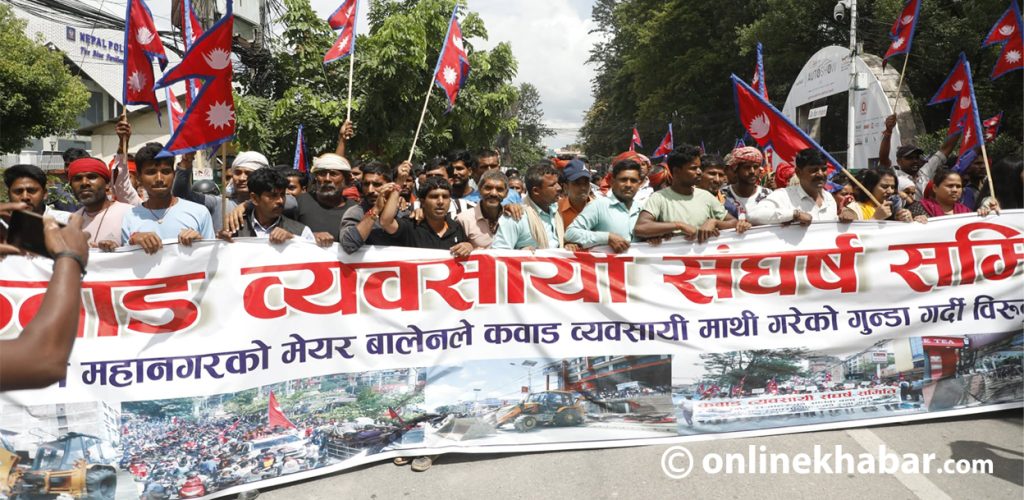 बालेन सरकार विरूद्ध कवाड व्यावसायीहरूकाे प्रदर्शन