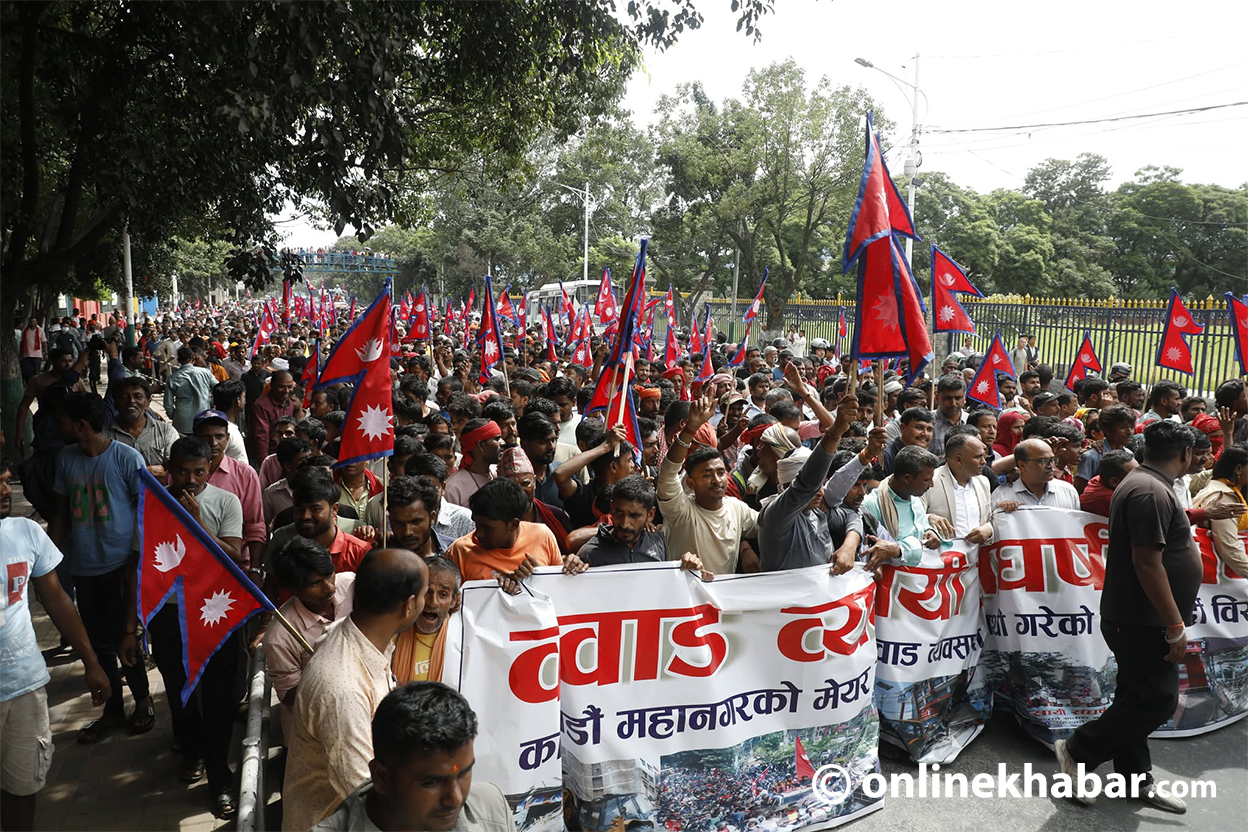 उनीहरूले काठमाडौं महानगर पालिकाका मेयर बालेन शाहले कवाड व्यावसायीहरु माथि गरेको गुण्डागर्दी विरुद्धको प्रर्दशन लेखिएको व्यानरसहित भृकुटीमण्डपदेखि कमलादीस्थित काठमाडौं प्लाजासम्म प्रदर्शन गरेका हुन् ।
