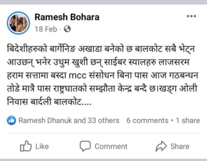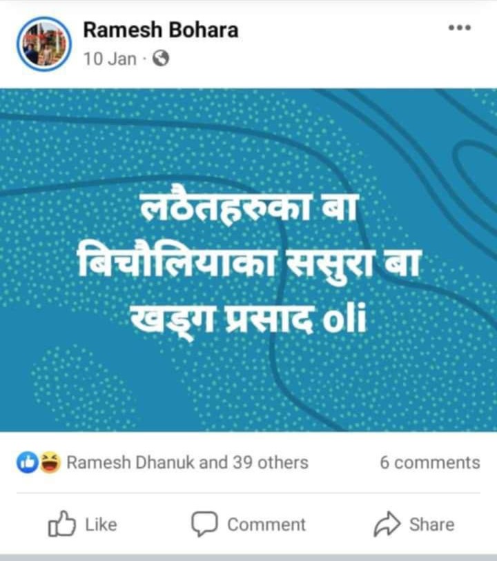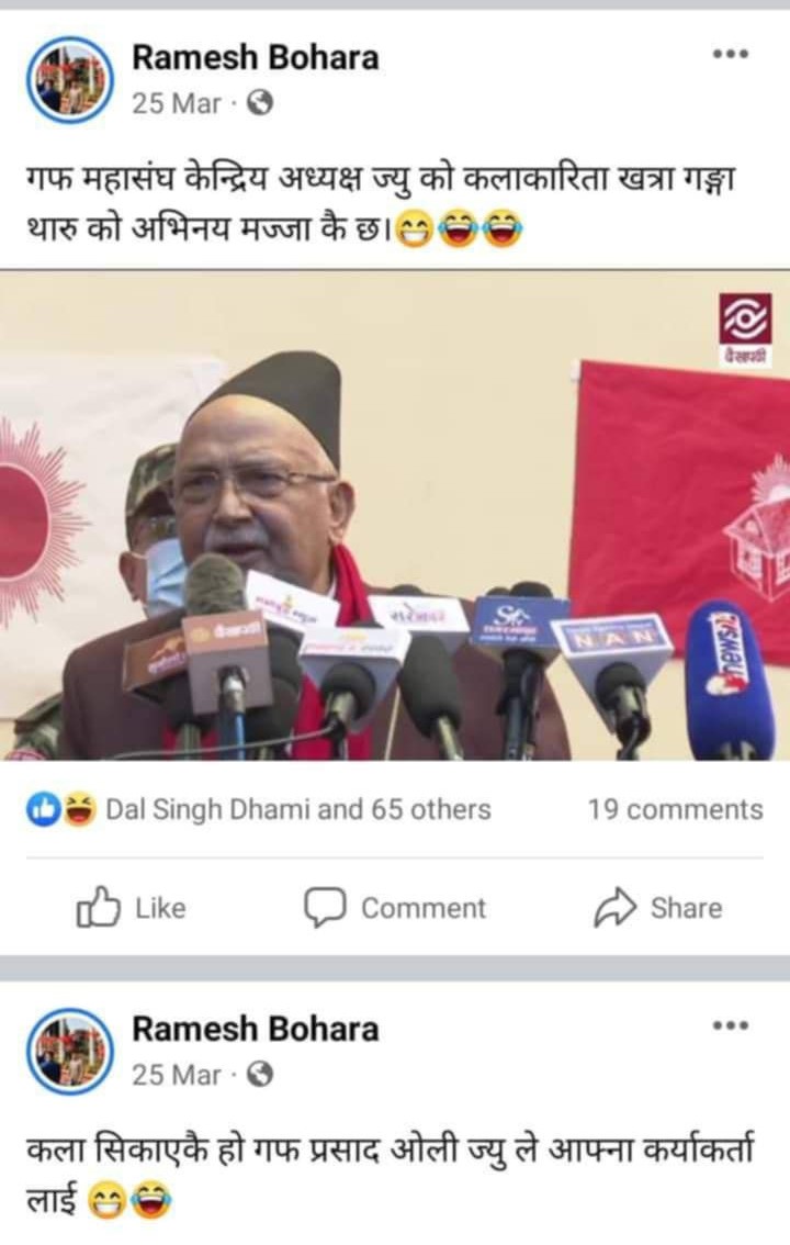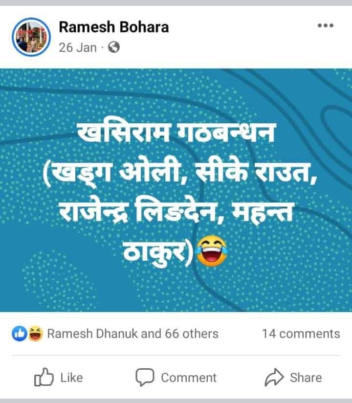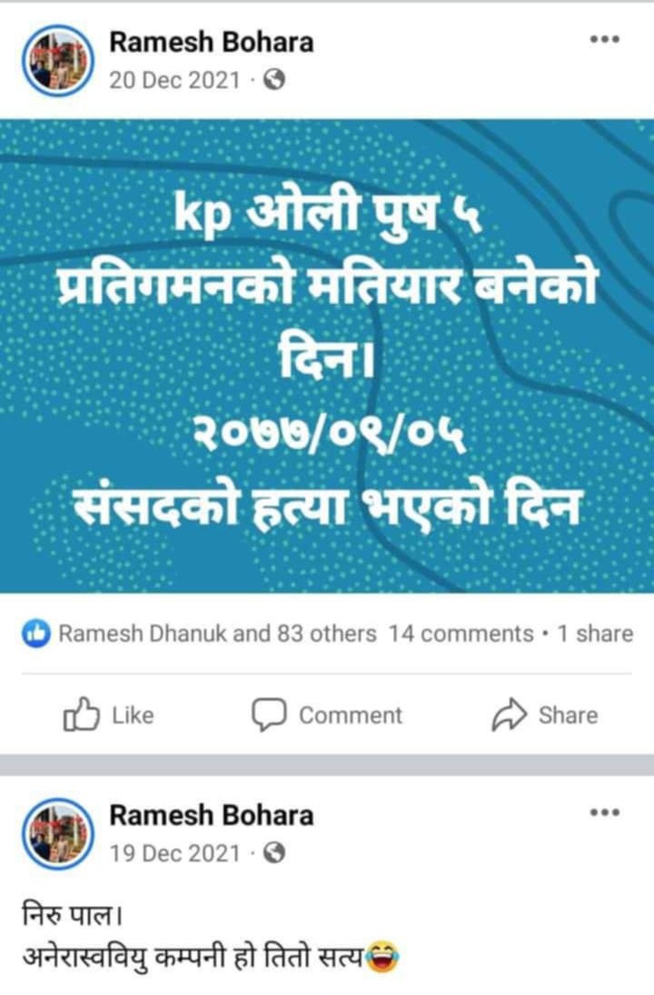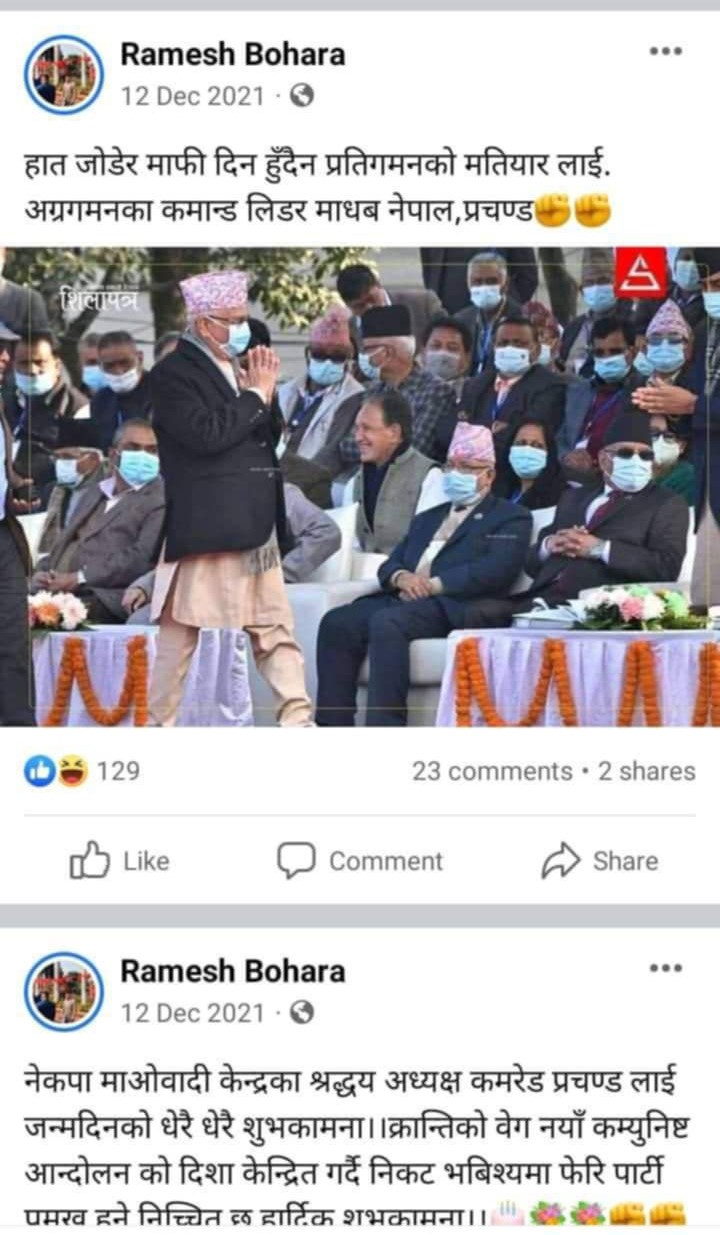 बाेहाेराले सामाजिक सञ्जालमा लेखेका केही पाेस्टहरू हेर्नुहाेस् ।