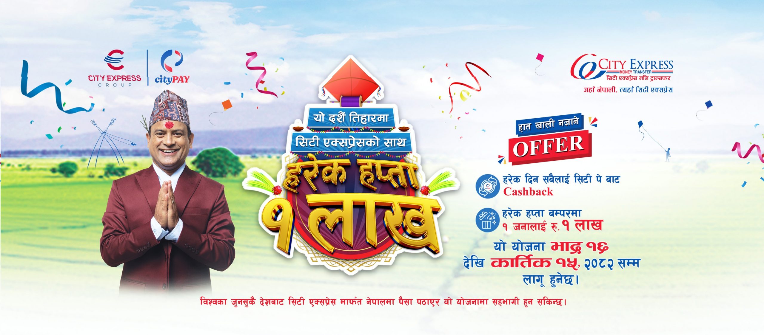 सिटी एक्सप्रेसको चाडपर्व अफर सार्वजनिक, हरेक हप्तामा ग्राहकलाई १ लाख उपहार