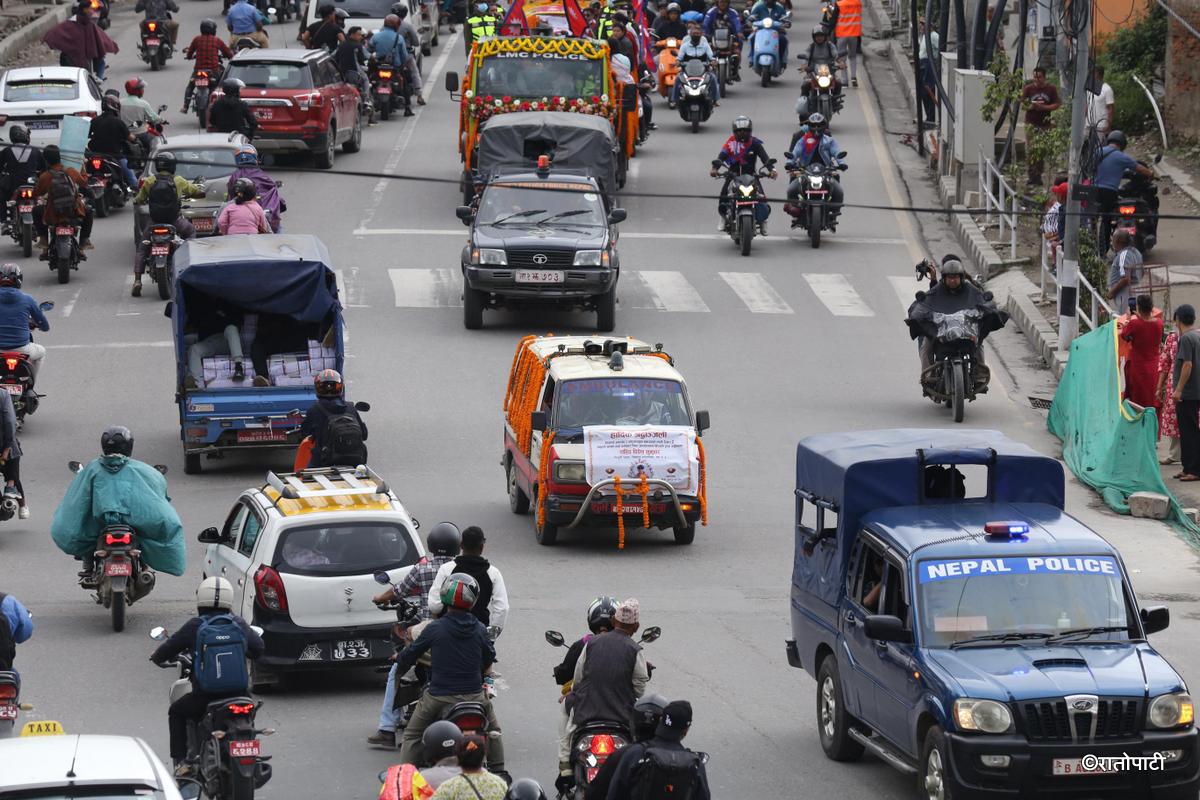 शवयात्राका लागि टिचिङ अस्पतालबाट निकालिसकिएको अस्पतालका सुचना अधिकारी काली प्रसाद रोस्याराले जानकारी दिए ।
