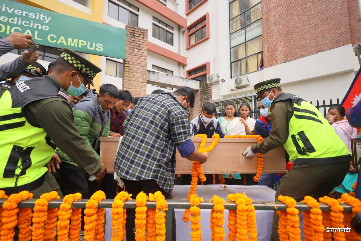 उनीहरूको बलिदानको सम्मान गर्दै टिचिङ अस्पतालबाट चक्रपथ परिक्रमा गराई शव यात्रा गरि अन्त्येष्टि गर्ने तयारी गरिएको छ ।