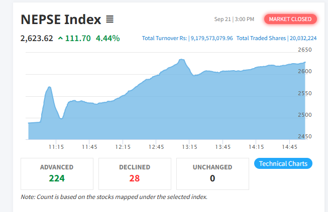 नेप्से परिसूचक १११.७० अंकले बढ्याे !