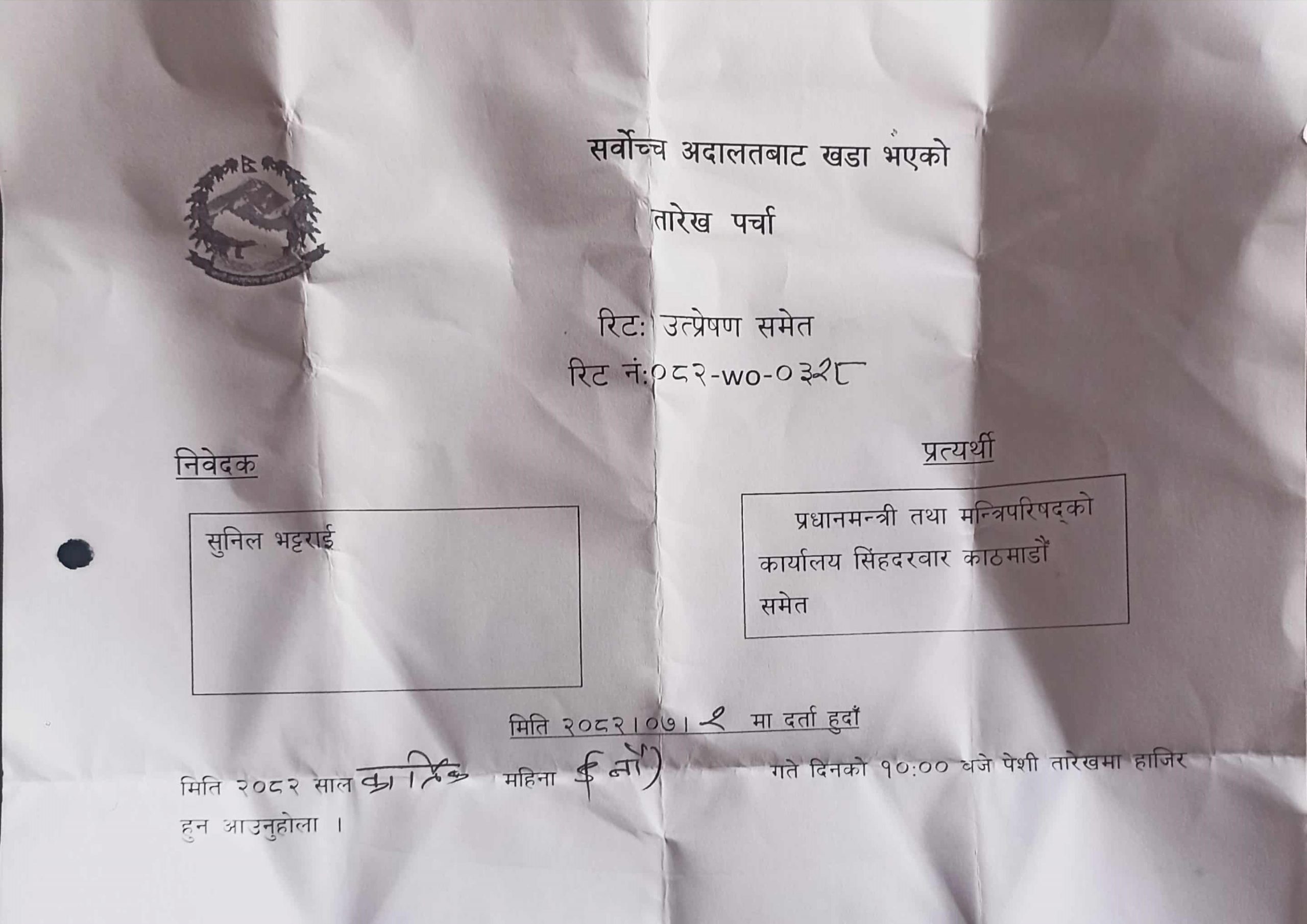 काठमाडौं । विभिन्न ११ मुलुकका राजदूतहरुलाई फिर्ता बोलाउने सरकारको निर्णयविरुद्ध सर्वोच्च अदालतमा रिट दर्ता भएको छ। कार्तिक २ गते आइतबार सुनिल भट्टराईले प्रधानमन्त्री तथा मन्त्रिपरिषद् कार्यालय र परराष्ट्र मन्त्रालयलाई विपक्षी बनाएर सरकारको निर्णय बदर गर्न माग गर्दै रिट दायर गरेका हुन् ।