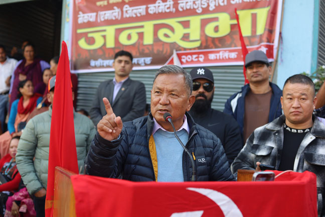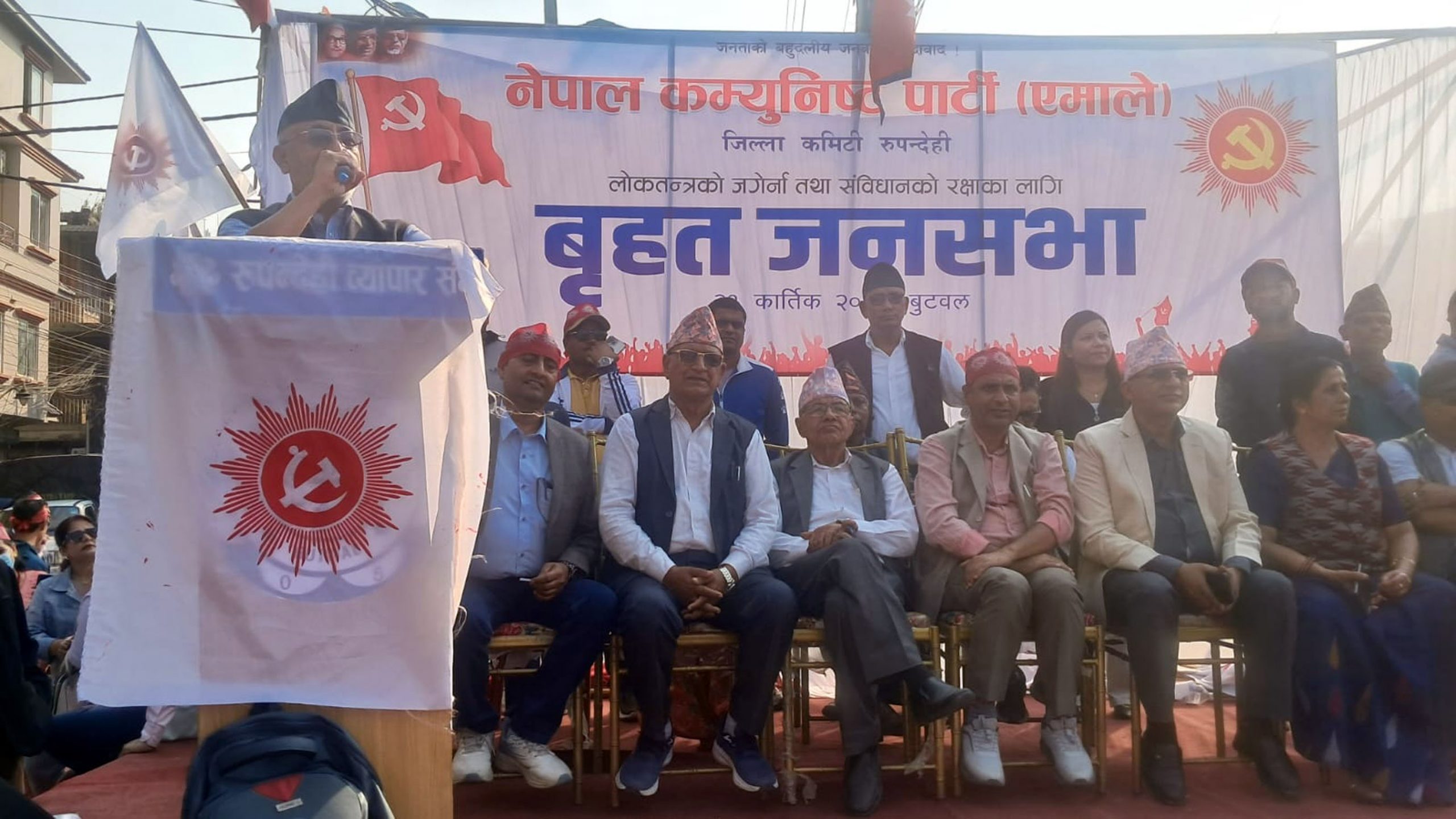 नेपाल कम्युनिष्ट पार्टी एमाले बाँके जिल्ला कमिटीले आज नेपालगञ्जमा आयोजना गरेको जनसभामा उनले राष्ट्रलाई वर्तमान संकटबाट उकास्न पार्टी क्रियाशील रहेको बताए ।