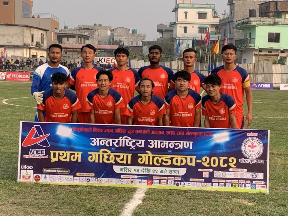 गछिया (मोरङ)। प्रथम गछिया गोल्डकप–२०८२ को बुधबार भएको खेलमा गाईघाट युनाइटेड फुटबल क्लबले जीत हासिल गर्यो । झापाको जलथल फुटबल क्लबलाई ४–१ ले पराजित गर्दै गाईघाट युनाइटेडले सेमिफाइनलमा स्थान सुरक्षित गर्यो।