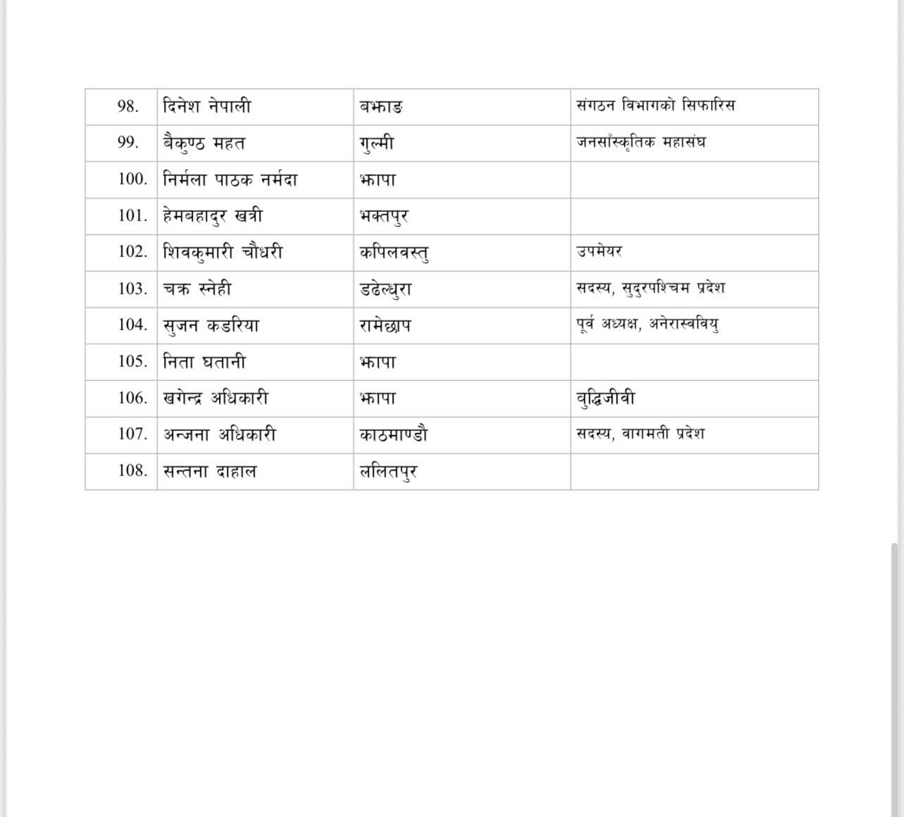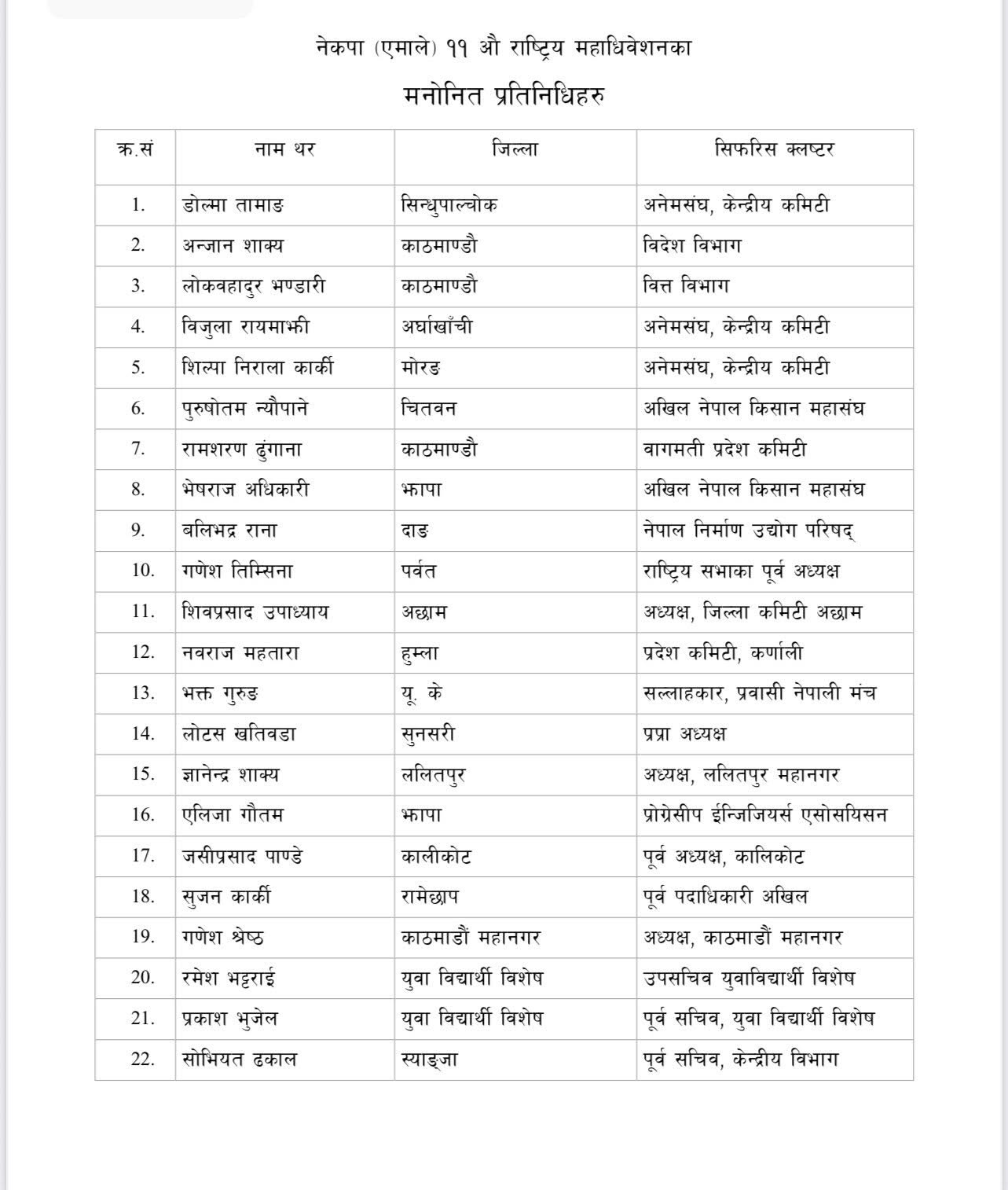 एमाले महाधिवेशन : यी हुन् सुनिता डंगोलसहित मनोनीत १०८ प्रतिनिधि