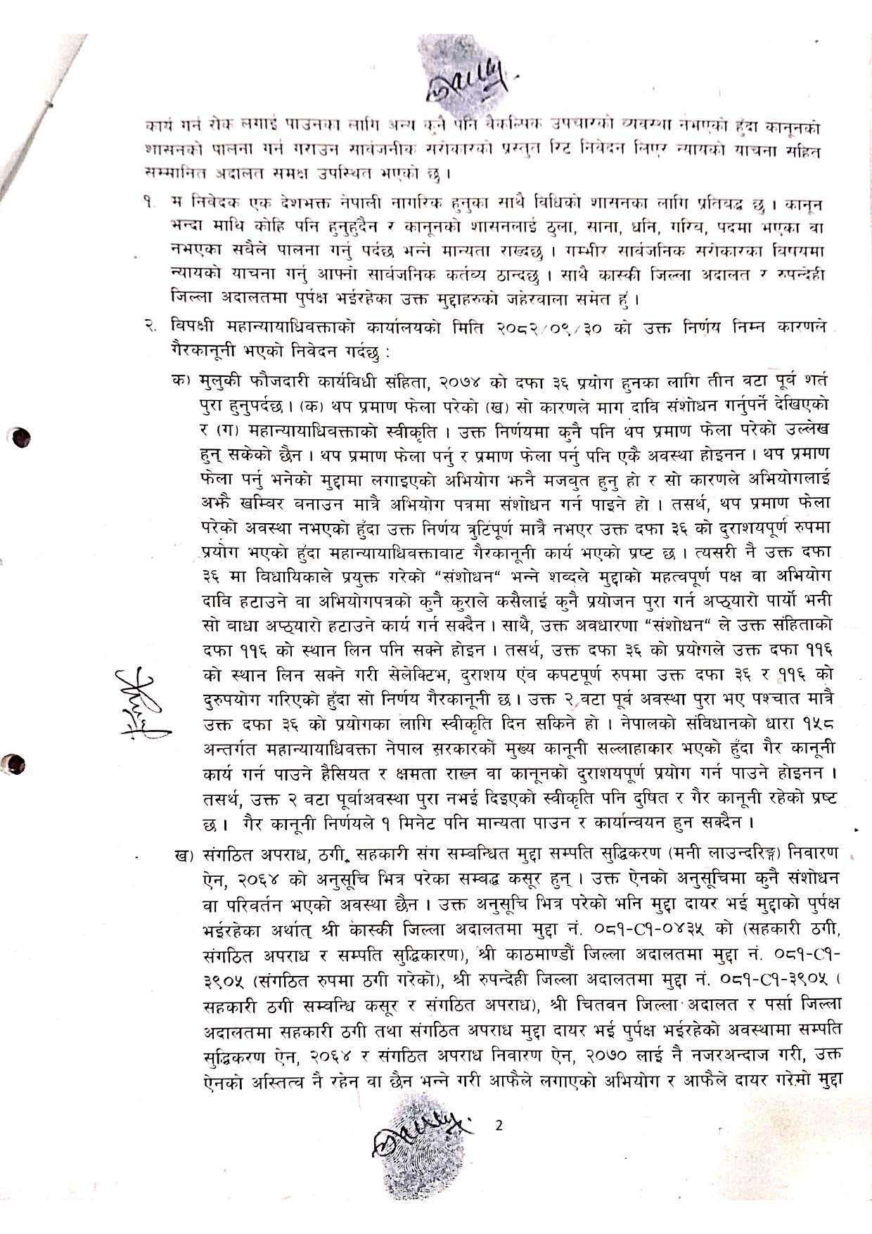 कास्की, काठमाडौं, रुपन्देही, पर्सा र चितवन जिल्ला अदालतमा दायर ठगी तथा सहकारी ठगीका अभियोग यथावत् रहने गरी संगठित अपराध र सम्पत्ति शुद्धीकरणसम्बन्धी अभियोग भने लागू नहुने गरी मुलुकी फौजदारी कार्यविधि संहिता, २०७४ को दफा ३६ बमोजिम अभियोग संशोधन गर्न स्वीकृति दिइएको निर्णयमा जनाइएको छ।