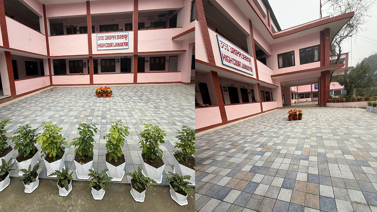 जनकपुर । जनकपुर उच्च अदालतका न्यायाधीश तथा कर्मचारीको तीन दिन बिदाको सदुपयोग देशमै एक उहारणीय भएको छ । कायम मुकायम मुख्य न्यायाधीश टेकनाराण कुँवरले उच्च अदालतको सामूहिक निर्णय र सहभागितामा तीन दिनसम्म सरसफाइ तथा सजावट गर्दै अदालत परिसर हेर्न लायक बनाइएको जनाएका छन् ।